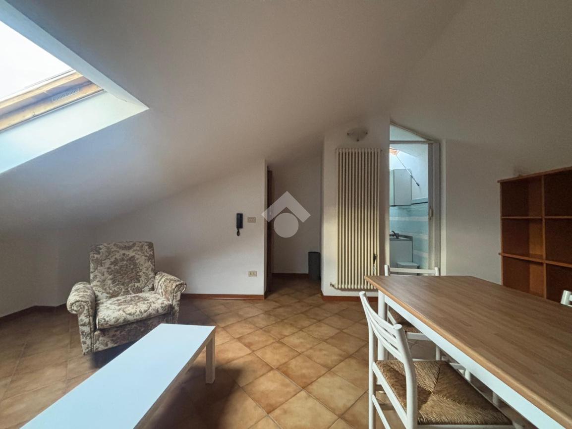 Accogliente monolocale mansardato situato all’ultimo piano.